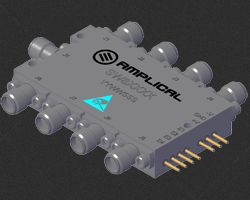Amplical’s family of competitively priced high performance broadband coaxial PIN diode single-pole, eight-throw switches (SP8T) feature low insertion loss, low vswr, high isolation, and fast switching speed. All switches are available with either absorptive or reflective inputs in many broadband frequency ranges including 2 to 18GHz, 500MHz to 18GHz and an ultra-broadband 100MHz to 20GHz. The switches operate from +5V and –12 to –20V DC power supplies. DC current draw is optimized to minimize DC power dissipation. TTL compatible drivers are incorporated on all switches for convenient logic control. Mechanical packages for all switch configurations have been optimized for minimal size and weight. The switches incorporate MIL-PRF-39012 SMA female connectors and ø0.030” solder pins. Ø0.096 through-holes are incorporated on all switches for convenient chassis mounting. Applications for this series of switches include Communications Systems, Electronic Simulators, Bypass Switches, Test Equipment, Switched Filter Banks, Blanking Switches, Radar Systems, EW Systems, and Simulators. All switches can be customized for any electrical or mechanical parameter including alternate DC power supplies, frequency band-specific performance optimization, port-to-port and unit-to-unit insertion loss and insertion phase matching. Hermetic seal and MIL/high-reliability screening is available on all models. |